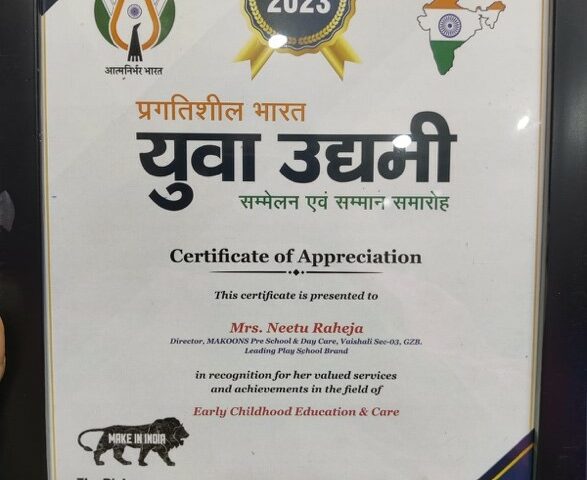 New Delhi, 7th November 2023: In a significant achievement for early childhood education, Makoons Play School in Vaishali has been honored with the ‘Early Childhood…